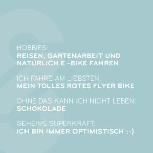 ich mag meinen Job, weil er so vielfältig ist. Wir haben ein tolles Team, und ich freu mich, wenn ich lieben Menschen im Verkauf kennen lerne und ihnen zu ihren neuen Traumrad verhelfen kann.