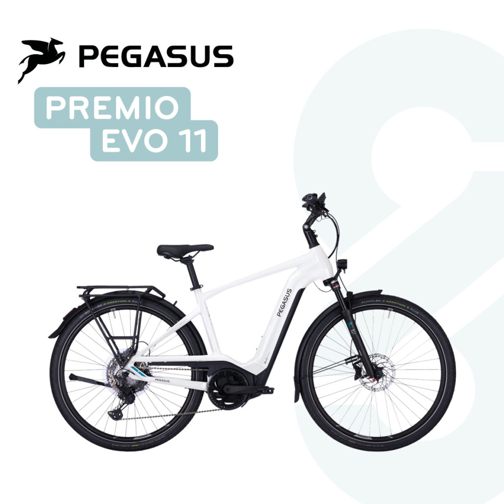 Diesen Monat möchten wir euch das Trekkingbike Pegasus Premio EVO 11 “ 40Years“ vorstellen. Ein kraftvoller Boschmotor und ein Powerakku sind das Herzstück des Bikes. Radeln kannst du mit dem hochwertigen E-Bike durch die City genauso gut wie durch anspruchsvolles Gelände. Kleine i-Tüpfelchen wie eine sanfte Schaltung, leistungsfähige Scheibenbremsen und das neue Kiox-Display ergänzen das Gesamtpaket des Premio EVO. Somit unterstützt es dich dynamisch und macht alle Touren zu einem besonderen Erlebnis.