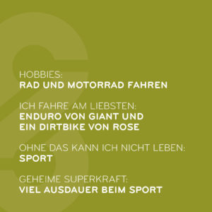 Seine großen Hobbys sind Rad und Motorrad fahren.