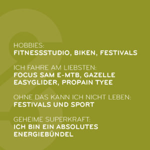 In seiner Freizeit ist er am liebsten mit seinem E-MTB und seinen Arbeitskollegen unterwegs. Musik ist eine weitere Leidenschaft von ihm und er hat sich als Top-DJ auf unserer Weihnachtsfeier bewiesen. Er ist ein sehr aktiver Mensch und genießt seine Workouts im Fitti 💪😁
