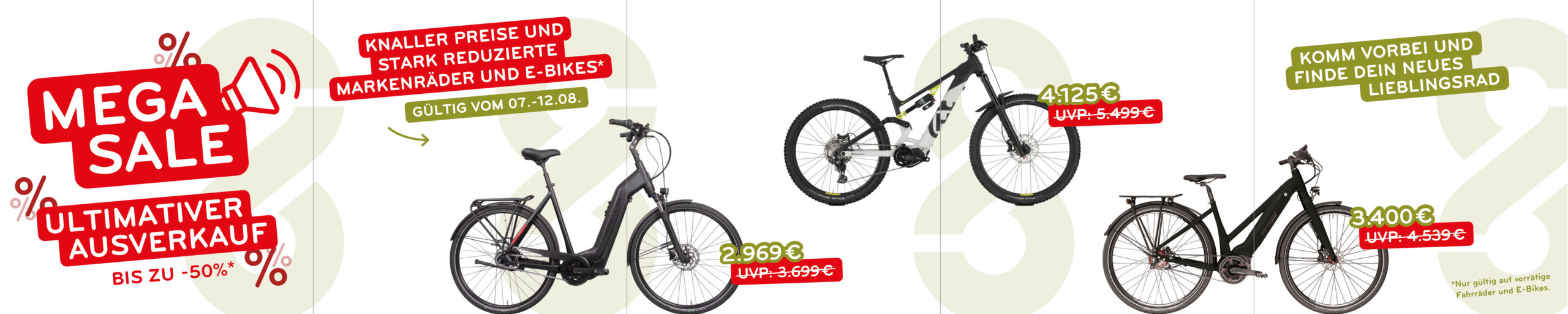 Auf dich warten elektrisierende Angebote beim MEGA SALE in Olfen und Dülmen! Erlebe den absoluten Wahnsinn mit topmodernen E-Bikes und Markenrädern zu unglaublichen Preisen – nämlich mit bis zu 50% Rabatt!