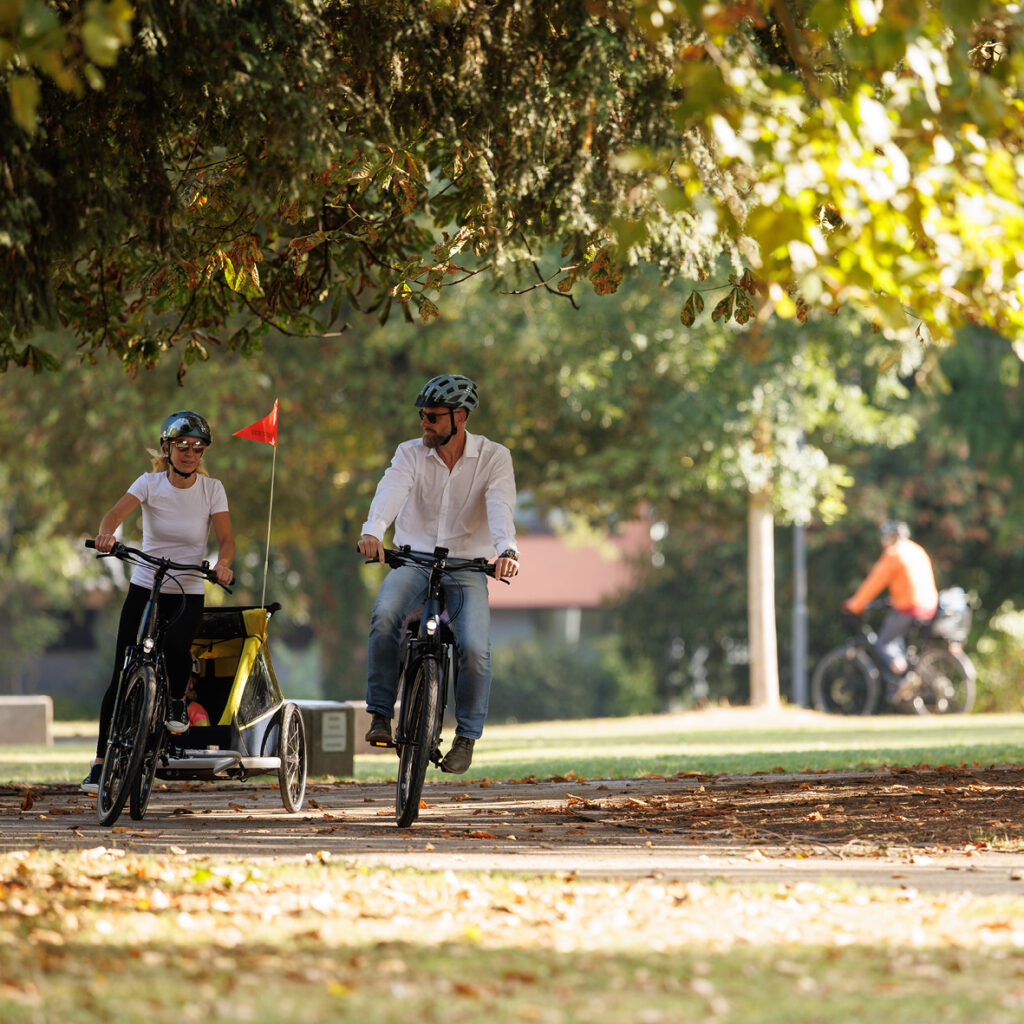Unser heißer Tipp: Der Naturpark Hohe Mark! Hier findest du einige der schönsten Radwege in ganz NRW. Lass dich entführen durch idyllische Auen, duftende Feuchtwiesen und bunte Heideflächen. Schwinge dich durch dicht bewachsene Wälder und entlang weitläufiger Seen und Flüsse. Mit der brandneuen Hohe Mark RadRoute, gekennzeichnet durch das grüne Fahrrad, ist das Erkunden der Naturparadiese auf 282 km ein wahres Vergnügen.