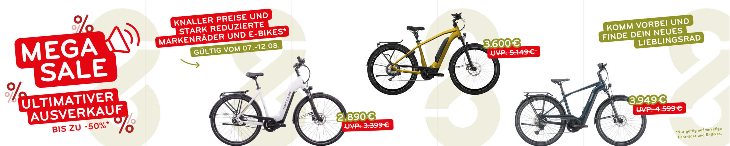 Unser MEGA-ABVERKAUF startet heute und ihr könnt fette Rabatte auf Markenräder und E-Bikes abstauben!