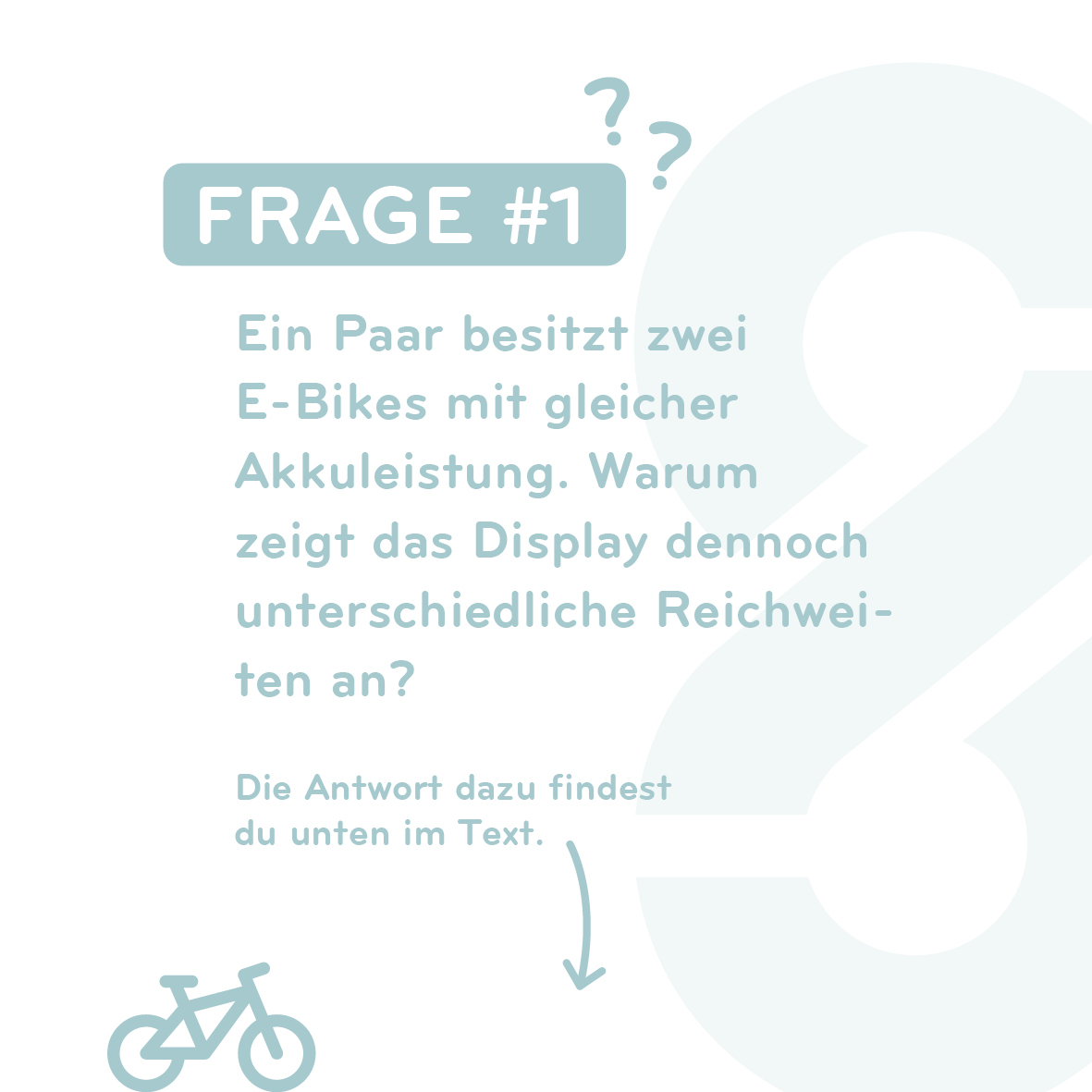 Lasst uns gleich mit einer Frage rund um den E-Bike-Akku starten. Ein Paar besitzt zwei E-Bikes mit gleicher Akkuleistung. Warum zeigt das Display dennoch unterschiedliche Reichweiten an?