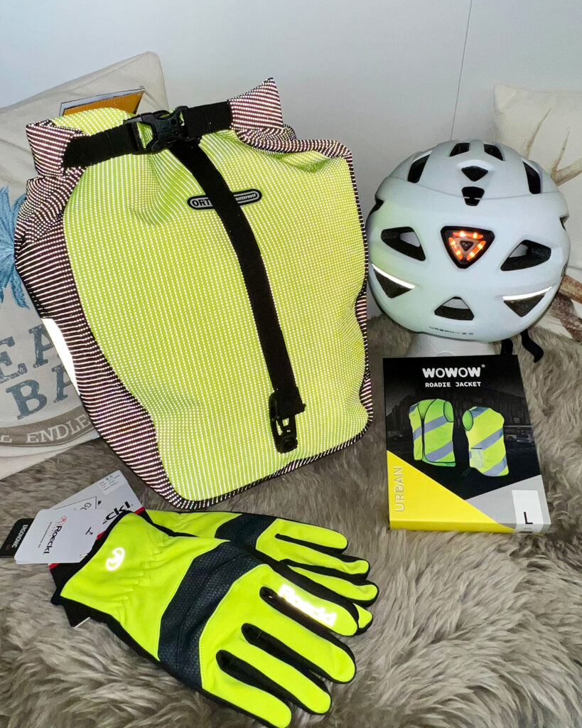 - Integriere reflektierende Elemente an Kleidung, Helm und Fahrrad.