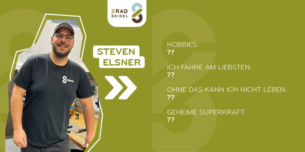 Da ist er – unser Steven Elsner! Er ist bereits seit über einem Jahr in unserer Werkstatt tätig. Wenn er nicht gerade mit seinem alten VW Jetta, seiner Triumph Street Triple oder seinem Focus Thron E-MTB unterwegs ist, sorgt er mit seiner ultra-chilligen Attitude für gute Vibes im Team und bei unseren Kunden. Und ein Tag, der mit einer leckeren Pizza am Abend endet, ist für ihn einfach perfekt! 🥰