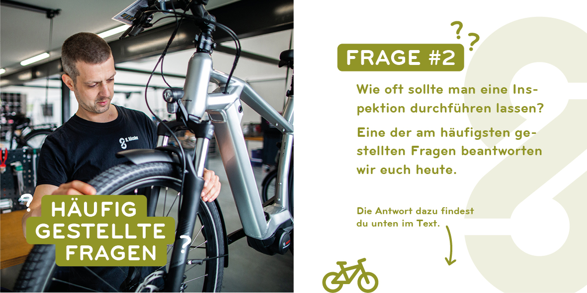 Als Anhaltspunkt empfehlen wir, die erste Inspektion nach etwa 500 Kilometern Fahrstrecke durchzuführen. Spätestens nach einem halben Jahr sollte euer neues E-Bike einer gründlichen Überprüfung unterzogen werden, danach reicht in der Regel eine jährliche Wartung aus.