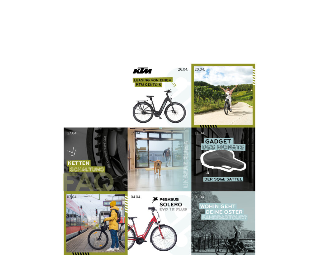 01.04. Ostermontag 04.04. Angebotsrad 07.04. Deshalb lohnt sich das Pendeln mit dem Rad 11.04. Gadjet des Monats – SQLap Sattel 15.04. Unser Hund Zuma erkundet den Laden 17.04. FAQ Kettenschaltung 20.04. Welche Tour hast Du Dir für dieses Jahr vorgenommen? 26.04. Leasingbeispiel