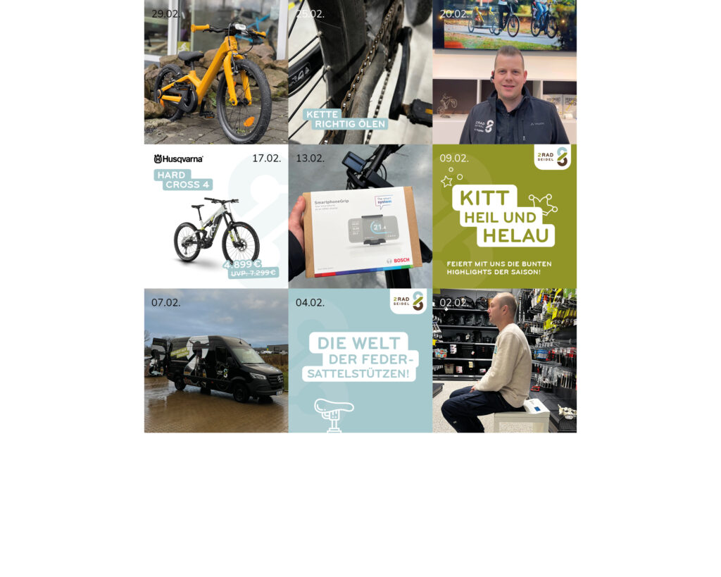 02.02. Schmerzen beim Radeln ursachen und Gründe 04.02. unterschiedliche Federsattelstützen im Vergleich 07.02. Unser Bulli ( Hol und Bring Service) 09.02. Karneval in Olfen 13.02. Handyhalter für dein Ebike (Bosch Smartphone Grip) 17.02. Angebotsrad des Monats 20.02. Leasing Inspektion Erinnerung 25.02. FAQ Kette Ölen 29.02. Affenzahn
